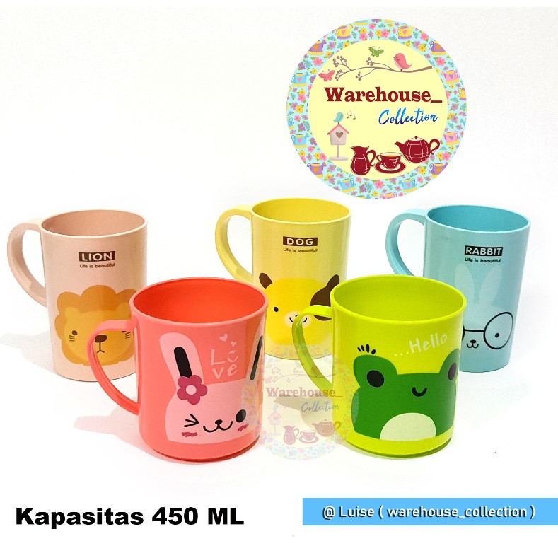 Suplier Perlengkapan di Kabupaten Jombang Mug Plastik/gelas Plastik Gagang / Gelas Minum Motif Animal / Gelas Minum Murah dari Warehouse_collection Kab. Purworejo