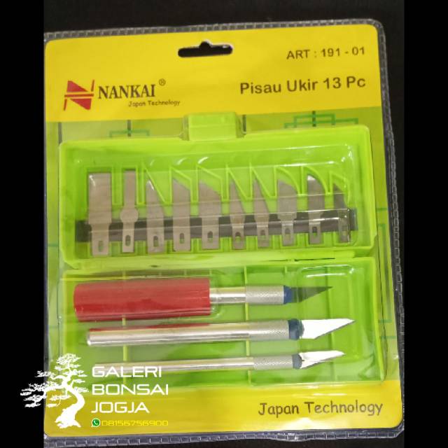 Pisau Ukir merk NANKAI, 1 set terdiri dari 13 PC mata pisau. Berfungsi sebagai alat ukir kertas, kayu, atau kerajinan lainnya. Bisa juga dipakai untuk oku