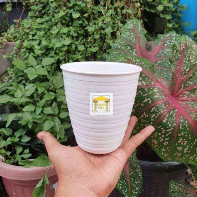 pot bunga tawon putih 12cm dengan model lebih tinggi(PIRUS) sangat unik cocok untuk menanam tanaman bunga,buah dan kaktusdiameter atas : 12 cmdiameter bawah : 6,5cmtinggi : 12,5 cmDropship & Reseller We