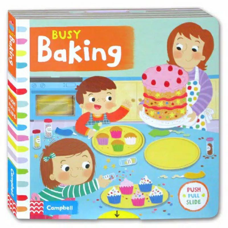PUSH PULL SLIDE BOOK - BUSY TOWN- Board book bahan tebal- 18cm x 18cm- 10 hal