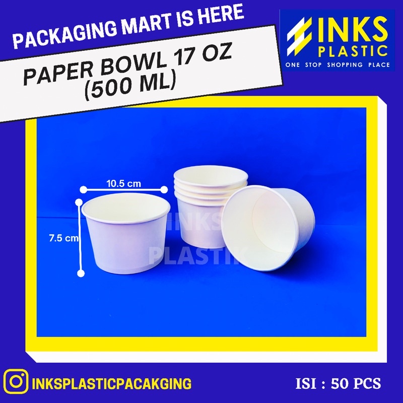 Paper bowl ukuran 17 oz ( 500 ml )1 pack isi 50 pcsharga yang tertera untuk bowl sajabahan food grade,