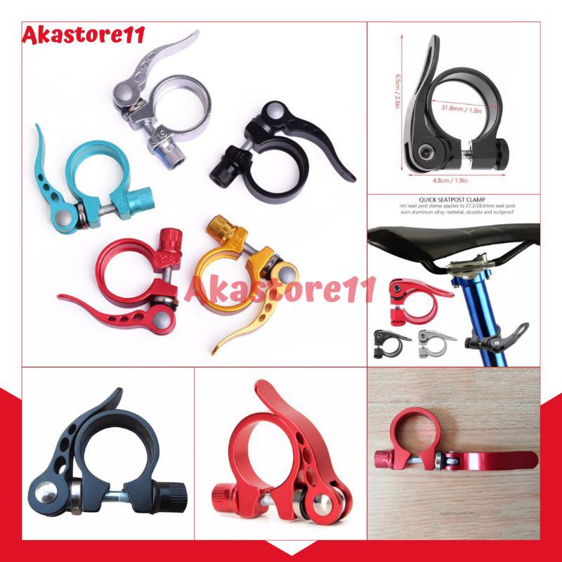 ==================================== Selamat datang di akastore11 ====================================✍ Clamp kunci jok sepeda ini berfungsi untuk mengatur tinggi rendah jok sepeda dengan lebih mudah, sesuai dengan kenyamanan Anda.✍ Mode lock dari klem jok sepeda ini sangat simpel, cukup masukkan tiang jok sepeda lalu putar dan kencangkan quick release.✍ Bahan dari clamp jok ini terbuat dari aluminum alloy yang mana tidak mudah rusak atau patah, dapat menahan tiang jok dengan kuat meskipun pada medan yang sulit dan bebatuan.✍ Seat post clamp sepeda ini dapat digunakan untuk berbagai model sepeda. Terdapat 3 Ukuran untuk clamp penjepit ini :- seat post 28.6mm yang dapat digunakan untuk tiang sepeda 25.4 mm.- seat post 31.8mm yang dapat digunakan untuk tiang sepeda 27.2/28.6 mm.- seat post 34.9mm yang dapat digunakan untuk tiang sepeda 30.4/31.88 mm.✍ Barang-Barang yang Anda dapatkan dari dalam kotak produk :✔ 1 x Clamp Penjepit Saddle Jok Sepeda Quick Release Note :Total Length : 11.2 cmMaterial : Aluminum Alloy#clamp #clamppenjepit #clamppenjepitsepeda #clamppenjepitsadel #aksesorissepeda Tanyakan ketersediaan stok sebelum memesan Jika varian (warna, ukuran, model) yg dipesan out of stock, maka akan dikirimkan varian (warna, ukuran, model) yg available Memesan berarti menyetujui semua hal yg kami sebutkan====================================Happy Shopping===============================