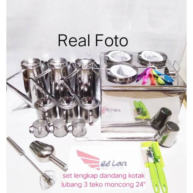 CARA PERAWATAN BAHAN STANSLISS STEEL1.Cuci perangkat stainless steel dengan air hangat dan spons cuci piring.2.Gunakan sedikit sabun cuci piring cair jika perlu untuk menghilangkan sisa-sisa minyak.3.Bilas, lap dengan kain kering, lalu biarkan mengering secara alami.Harga tidak akan membohongi KUALITAS maka jangan mudah tergiur dengan harga MURAH.Paket akan cepat sampai untuk wilayah JABODETABEK dan sekitarnya.Untuk pengiriman via GOJEK/GRAB mohon untuk menghubungi kami terlebih dahulu, karena ukuran serta berat kami sesuaikan terlebih dahulu agar dapat di PICKUP oleh kurir yang sudah disetujui.√Dandang Kotak Lubang 3 (1pcs)√Teko Moncong 24" (3pcs)√Mug Besar 10" (3pcs)√Mug Kecil 6" (3pcs)√Saringan Kain Kecil (3pcs)√Irus/Gayung (1pcs)Item tambahan yg anda dapatkan, √Scop Es (1pcs)√Hand Mixer (1pcs)√Sendok Takar 5 Ukuran (1pcs)√Pembuka Kaleng (1pcs)Akan jauh lebih murah bila anda memebeli paket lengkap yg kami tawarkan, dari pada anda harus membeli item tambahannya secara eceran.Kualitas stainless terbaik & kuat siap memanjakan anda dalam membuka peluang usaha minuman cepat saji.Packing dus tebal ektra buble, maka jangan khawatir barang cacat atau bermasalah nantinya.Yuk jangan lama-lama langsung diorder aja :) :) :) :)#dandanguap#paketlengkapdandang#dandangthaitea#thaitea#tekothaitea#saringankain#kelengkapankopi#dandangbulat#dandangkotak#peralatandapur#tekomo