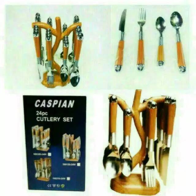 Sendok CASPIAN SET 24pcs ,Rp.dengan design natural dan stand model pohon sehingga membuat meja makan anda lebih indah.Material sendok terbuat dari bahan stainless steel anti karat1set terdiri dari :- 6pcs Sendok makan- 6pcs Garpu makan- 6pcs Sendok kue- 6pcs Pisau SteakStand terbuat dari bahan plastik NO complain No Retur, Order berarti setuju agar lebih aman tambahkan packing aman buble warp untuk keamanan dalam pengi